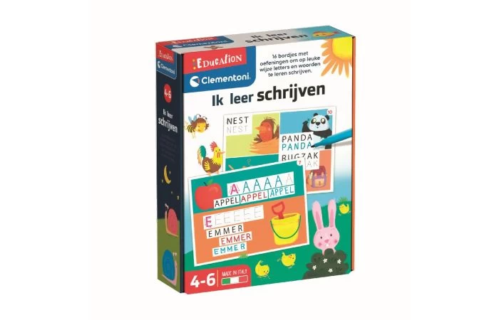Met dit leerspel kan het kind op een leuke manier en stap voor stap kennismaken met schrijven! Wordt geleverd in full-colour doos. Geschikt voor kinderen vanaf 4 jaar.