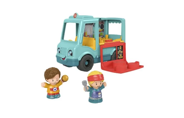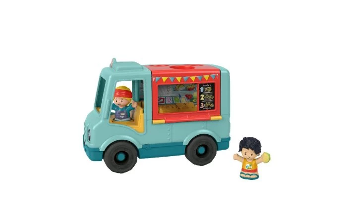 Fisherprice Little People Foodtruck. Je bestelling graag! Peuters beleven uren heerlijk speelplezier wanneer ze een bestelling plaatsen, gerechten bereiden en serveren met de Little People Service hamburgertruck. Druk op de knop of op de bestuurdersstoel van dit speelgoed met muziek en luister naar de verschillende liedjes, geluiden en zinnen voor nog meer speelplezier. De hamburgertruck heeft een keuken en een uitklapbaar eetgedeelte. En met de twee Little People figuren kun je eindeloos veel leuke verhalen bedenken! Wordt inclusief 2 AA-batterijen geleverd in try-me verpakking. Geschikt voor kinderen vanaf 1 jaar.