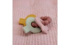 De komst van de eerste tandjes is een mijlpunt voor jouw baby, maar niet altijd even prettig! Om de pijn te verlichten heeft Little Dutch een multifunctionele bijtring ontworpen in de vorm van een sleutelbos. Het is een speeltje maar biedt ook troost en helpt de nieuwe tandjes door te komen. Het bijtspeeltje heeft verschillende texturen waardoor jouw baby genoeg te ontdekken heeft. Speciaal ontworpen dat het makkelijk vast te pakken is voor baby handjes! In zachte aardetint, zand en roze. Geschikt voor kinderen vanaf 4 maanden.