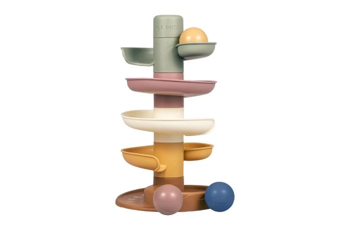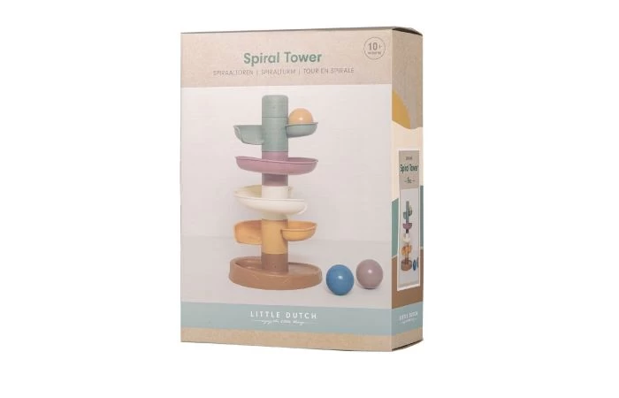 Laat de bal maar rollen! De spiraaltoren van Little Dutch zorgt voor eindeloos veel speelplezier. Deze kleurrijke set bestaat uit 5 herkenbare vintage gekleurde delen die jouw kleintje gemakkelijk op elkaar stapelt. Laat de ballen één voor één op de bovenste laag vallen en kijk hoe ze achter elkaar naar beneden rollen en slingeren. De spiraaltoren draagt bij aan de ontwikkeling van de hand-oog coördinatie en leert kleintjes over oorzaak en gevolg, waarmee het zowel leuk als leerzaam spelen is. Bij de spiraaltoren zitten standaard 3 lichte en gemakkelijk vast te pakken ballen in verschillende kleuren die bij beweging een geluidje maken. Dit speelgoed is uitgevoerd in de super trendy Little Dutch retro kleuren. De afmeting is: 18 x 18 x 30 cm. Geschikt voor kinderen vanaf 18 maanden.