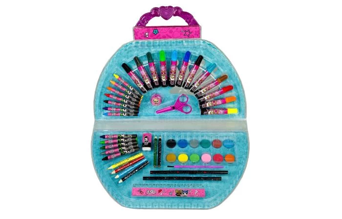 Deze LOL kleurkoffer zit boordevol kleurplezier! Deze kleurset is een geweldig cadeau voor kinderen, vooral voor de LOL Surprise fans. De draagbare koffer zorgt ervoor dat alle spullen netjes bij elkaar blijven, makkelijk te pakken zijn en nóg makkelijker zijn mee te nemen. De set bestaat uit 6 mini kleurpotloden, 12 stiften, 12 wasco’s, 12 waterverf tabs met penseel en mengbordje, gum, 2 potloden, puntenslijper, liniaal en een schaar. In de kleurencombinatie roze, paars en blauw, met afbeelding van jouw favoriete LOL-karakters. Afmeting van de koffer: 38 x 22 x 4 cm. Geschikt voor kinderen vanaf 3 jaar.
