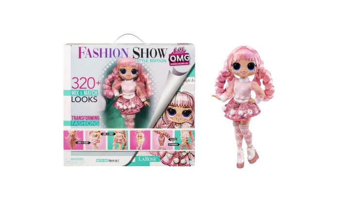 Maak kennis met de LOL Surprise OMG Fashion Show Style Edition! Deze OMG-modepoppen maken graag stijlvol plezier met hun vriendinnen en laten zien wie ze zijn op de catwalk. LaRose is fenomenaal, fantastisch en klaar voor haar modetransformaties! Ze heeft jouw hulp nodig om op de cover van het tijdschrift Fashion B.B. te komen. Creëer 320+ looks voor op de catwalk met de transformerende mode van LaRose! Maak jij haar lange rok korter, keer je hem om voor een andere kleur of doe je allebei? Zoek je vibe en laat die catwalk oplichten! LaRose heeft een heel mooi gezichtje, perfect gestyled haar en beweegbare ledematen voor heel veel houdingen. Elke LOL Surprise OMG Fashion Show Style Edition-pop is inclusief transformerende mode, glamoureuze accessoires, kledinghanger, poppenstandaard, haarborstel en paspop! Wordt geleverd in window box. Geschikt voor kinderen vanaf 4 jaar.