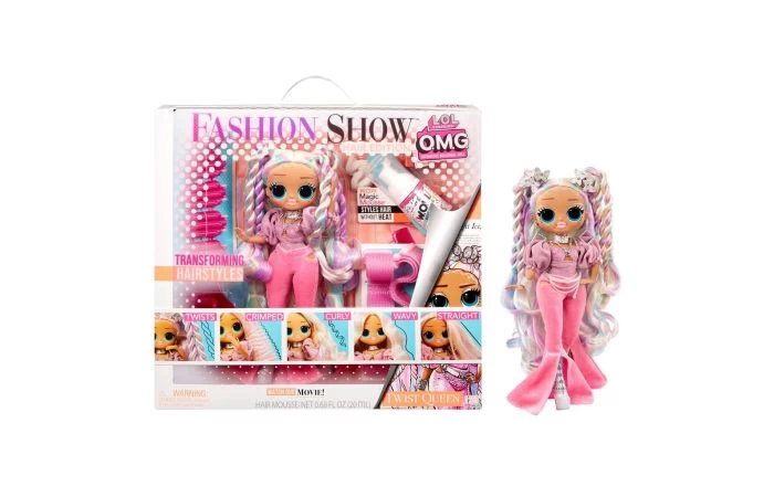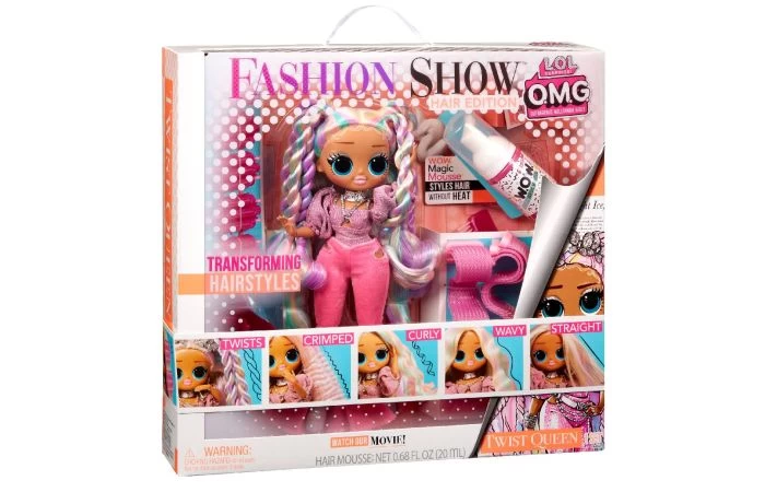 Maak kennis met de LOL. Surprise OMG Fashion Show Hair Edition! Deze OMG-modepoppen maken graag stijlvol plezier met hun vriendinnen en laten zien wie ze zijn op de catwalk. Twist Queen is fenomenaal, fantastisch en klaar voor haar haartransformaties! Ze heeft jouw hulp nodig om op de cover van het tijdschrift Fashion B.B. te komen. Met de gloednieuwe W.O.W. Magic Mousse en de stylinghulpmiddelen kun je binnen 30 minuten kapsels creëren voor op de catwalk, zoals gedraaide vlechten, wafeltjeshaar, krullen, golfjes, recht haar of meer. Allemaal zonder hitte. Zoek je vibe en laat die catwalk oplichten! Twist Queen heeft een heel mooi gezichtje, haar dat perfect geschikt is om te stylen en beweegbare ledematen voor heel veel houdingen. Elke OMG Fashion Show Hair Edition-pop is inclusief haartransformerende magische mousse, haarstyling-hulpmiddelen om eenvoudig wafeltjes, krullen, golfjes of recht haar te maken, spectaculaire mode en accessoires met veel details! Geleverd in window box. Vanaf 4 jaar.