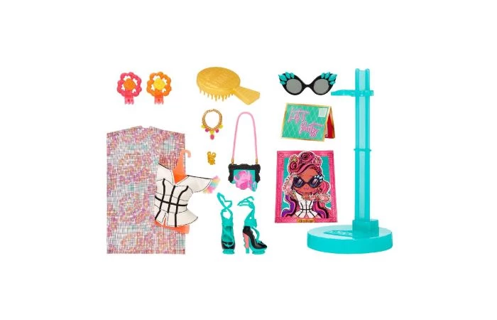 Pak 20 verrassingen uit met de LOL Surprise OMG Queens-modepop Miss Divine inclusief majestueuze mode en accessoires met een koninklijk thema. De stijl van Miss Divine is geïnspireerd op de natuur. Deze koningin kan haar ledematen bewegen, zodat ze altijd klaarstaat om een schilderij of tekening te maken van al het moois om haar heen. Miss Divine is de kunstkoningin die bij alles wat ze doet heel creatief is. Trek Miss Divine haar kleurrijke mode aan en vul aan met de chique accessoires. Inhoud: 1 LOL Surprise OMG Queens-modepop, modeoutfit, modeaccessoires, oorbellen, ketting, armband, tasje, schoenen, haarclips, zonnebril, uitnodiging, haarborstel, kledinghoes, kledinghanger en poppenstandaard. Verzamel alle 4 de LOL Surprise OMG Queens-modepoppen: Runway Diva, Miss Divine, Sways en Prism. Wordt geleverd in fraaie windowbox. Geschikt voor kinderen vanaf 3 jaar.