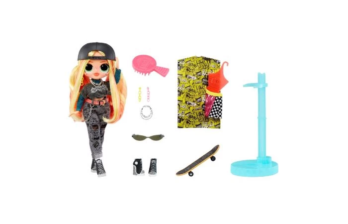 Maak kennis met de gloednieuwe LOL Surprise OMG.-modepop Skatepark Q.T. met 20 verrassingen! Skatepark Q.T. heeft een verbluffend mooi gezichtje, prachtig haar en haar eigen coole streetwear-stijl. Bovendien is ze de grote zus van het populaire L.O.L. Surprise-personage Sk8r Grrrl. De nieuwste L.O.L. Surprise O.M.G.-modepoppen zijn onverwachte BFF’s. Ze vieren de verschillen tussen vriendinnen waardoor ze elkaar sterker maken. Hoewel ze allemaal anders zijn, houden ze elk van hun eigen dingen, en vinden ze het belangrijk om zichzelf te blijven, ongeacht in welk gezelschap ze zijn. Elke doos is inclusief een L.O.L. Surprise OMG-modepop, 2 outfits, schoenen, accessoires, haarborstel en poppenstandaard. Verzamel beide limited edition L.O.L. Surprise O.M.G.-poppen, Skatepark Q.T. en Trendsetter! Wordt geleverd in fraaie windowbox. Geschikt voor kinderen vanaf 4 jaar.