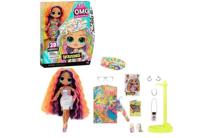 Maak kennis met de gloednieuwe LOL. Surprise OMG.-modepop Sketches met 20 verrassingen! Sketches heeft een verbluffend mooi gezichtje, prachtig haar en haar eigen unieke artistieke stijl. Bovendien is ze de grote zus van het populaire L.O.L. Surprise-personage Splatters. De nieuwste L.O.L. Surprise O.M.G.-modepoppen zijn onverwachte BFF’s. Ze vieren de verschillen tussen vriendinnen waardoor ze elkaar sterker maken. Hoewel ze allemaal anders zijn, houden ze elk van hun eigen dingen, en vinden ze het belangrijk om zichzelf te blijven, ongeacht in welk gezelschap ze zijn. Elke doos is inclusief een L.O.L. Surprise O.M.G.-modepop, 2 outfits, schoenen, accessoires, haarborstel en poppenstandaard. Verzamel beide limited edition L.O.L. Surprise O.M.G.-poppen: Sketches en Melrose! Wordt geleverd in full-colour doos. Geschikt voor kinderen vanaf 4 jaar.
