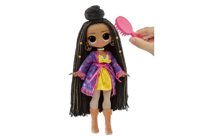 LOL Surprise OMG World Travel-modepop Sunset. Pak 15 verrassingen uit, inclusief mode en accessoires met een reisthema, zoals bagage die echt open kan, een nekkussen, zonnebril en paspoort! Sunset heeft een heel mooi gezichtje, prachtig gestyled haar en beweegbare ledematen voor heel veel houdingen. Bovendien is ze de grote zus van het populaire LOL Surprise-personage Foxy. Trek Sunset haar übercoole mode aan en vul aan met de fantastische accessoires. Tip voor pro’s: de handen zijn verwijderbaar, zodat je de pop makkelijk kunt aankleden. De verpakking van elke LOL Surprise OMG World Travel-pop is een herbruikbare speelset. Met Sunset krijg je 1 LOL Surprise OMG-modepop, trendy outfit, mode-accessoires, oorbellen, schoenen, koffer, zonnebril, nekkussen, halsketting, paspoort, haarborstel, kledinghoes, kledinghanger, poppenstandaard en herbruikbare verpakkingsspeelset. Verzamel alle 3 LOL Surprise OMG World Travel-modepoppen! Geschikt voor kinderen vanaf 4 jaar.