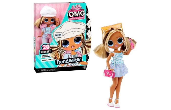 Maak kennis met de gloednieuwe LOL. Surprise OMG.-modepop Trendsetter met 20 verrassingen! Trendsetter heeft een verbluffend mooi gezichtje, prachtig haar en haar eigen fenomenale stijl. Bovendien is ze de grote zus van het populaire L.O.L. Surprise-personage Suite Princess. De nieuwste L.O.L. Surprise O.M.G.-modepoppen zijn onverwachte BFF’s. Ze vieren de verschillen tussen vriendinnen waardoor ze elkaar sterker maken. Hoewel ze allemaal anders zijn, houden ze elk van hun eigen dingen, en vinden ze het belangrijk om zichzelf te blijven, ongeacht in welk gezelschap ze zijn. Elke doos is inclusief een L.O.L. Surprise OMG-modepop, 2 outfits, schoenen, accessoires, haarborstel en poppenstandaard. Verzamel beide limited edition L.O.L. Surprise O.M.G.-poppen Trendsetter en Skatepark Q.T.! Wordt geleverd in fraaie windowbox. Geschikt voor kinderen vanaf 4 jaar.