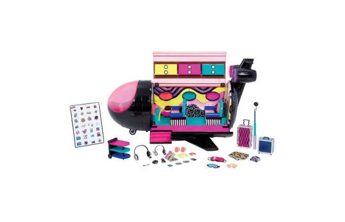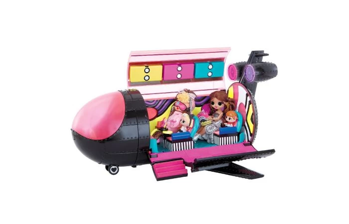 Deze 4-in-1-speelset kan transformeren in een: vliegtuig, auto, opnamestudio en DJ cabine. Pak 50 verrassingen uit met echt werkend licht en geluid, serveerwagentje met borden en bekers, rolkoffers, bagagevakken die open en dicht kunnen, stoelriemen en meer! Geschikt voor L.O.L. Surprise! O.M.G.-modepoppen en alle andere L.O.L. Surprise!-poppen. Het vliegtuig vervoert onze B.B.’s naar de So Extra Tour. Als ze landen, trek je het stoelgedeelte uit om van het vliegtuig een auto te maken. Maar ineens krijgen ze inspiratie. Deze muzikale meiden moeten meteen een nieuwe song opnemen! Maak los en draai het vliegtuig op zijn kant om er een opnamestudio en DJ cabine van te maken. De voorste stoelen kunnen draaien. Als het tijd wordt om te slapen, kantel je de stoelen achterover. Inclusief accessoires: 2 nekkussens, 2 slaapmaskers, 2 microfoons, 2 headsets, 2 dekens, tabletaccessoire, ticket en paspoort. Wordt inclusief 6 AG13 knoopcelbatterijen geleverd in full-colour doos. Geschikt voor kinderen vanaf 4 jaar.
