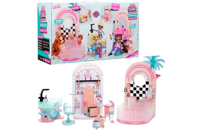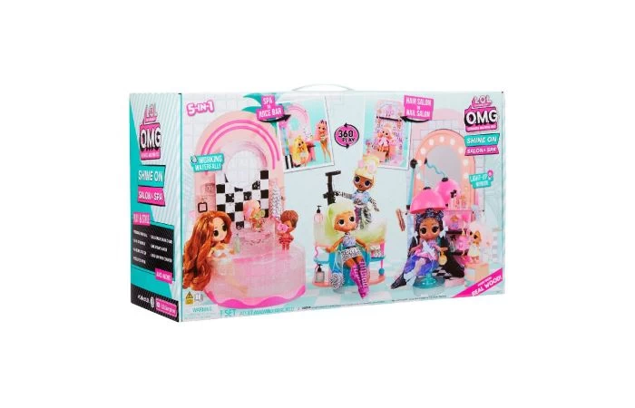 Klaar voor de ultieme spadag, Deze 5-in-1-speelset bevat een spabad met echt werkende waterval, een haarsalon met spiegel met verlichting, een echt werkende haarwasunit, een nagelsalon en een sapbar. Pak 65+ verrassingen uit waaronder haarstylingaccessoires, gezichtsmaskers voor je poppen en meer voor een geweldige interactieve speelervaring vol glamour! Begin bij de spa waar zowel de OMG-modepoppen als de verzamelpoppen in passen en check de echt werkende waterval. Pak je favoriete pop met kleurverandering en kijk in real-time hoe ze transformeert in het spabad. Zit je haar niet goed? Ga naar de haarsalon met heel veel haarstylingaccessoires en een verstelbare salonstoel. Schuif de salonstoel naast de echt werkende haarwasunit om het haar van je pop te wassen. De spiegel heeft ook verlichting, zodat je je nieuwe kapsel kunt bewonderen! Boek een manicure-pedicure en ga naar de sapbar voor toast met avocado of een selderijsapje om een dag vol glamour in stijl af te ronden. Geschikt vanaf 4 jaar.