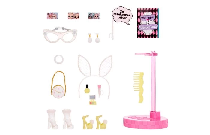 Je bent uitgenodigd voor de party van het jaar met de LOL Surprise Tweens Masquerade Party-modepop Jacki Hops. Jacki is de ster van haar crew en haast zich van fotoshoot naar fotoshoot als voorbereiding op een carrière als topmodel. Stijlvol te laat komen op een party is nooit een probleem! Trek haar haar jasje met nepbont en de konijnenoren aan en zet haar het masker op. Nu is ze klaar om te feesten in een gloednieuwe look! Pak 20 verrassingen uit, waaronder een Tweens-modepop met een supermooi gezichtje, prachtig haar en haar eigen fantastische stijl. Elke doos is inclusief een LOL Surprise Tweens-modepop, een opvallende partyoutfit, een jasje met nepbont, 2 paar schoenen, 1 paar oorbellen, een handtas met klokthema, een maskerademasker, een haarband met konijnenoren, een make-updoosje, een make-upkwast, een ketting met bergkristallen, een rekwisiet voor in een fotohokje, een haarborstel en een poppenstandaard. Wordt geleverd in windowbox en is geschikt voor kinderen vanaf 4 jaar.