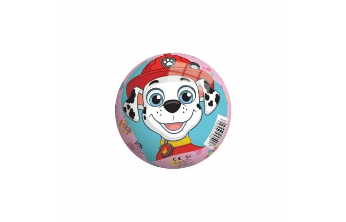 Op de bal staat een leuke illustratie van jouw Paw Patrol vriendjes Rubble, Skye, Marshall en Chase.