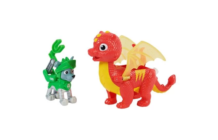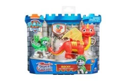 Ga mee met je favoriete pups en hun nieuwe drakenvriendjes, en beleef spannende reddingsmissies met de Rescue Knights Pup en Draak-sets. Deze set actiefiguren bevat Rocky en zijn trouwe drakenvriendje Flame. De geliefde pup van Paw Patrol draagt zijn Rescue Knights-harnas en is klaar om in actie te komen. Druk op de badgeknop van Rocky om het gereedschap in zijn rugzak te transformeren en open te klappen. Klem Rocky vervolgens op de rug van Flame en druk op de knop op de staart om de glinsterende, doorzichtige vleugels te laten bewegen. Deze geweldige set brengt al het middeleeuwse plezier van de populaire tv-serie tot leven. Verzamel alle Rescue Knights Pup en Draak-sets en gebruik je fantasie om keer op keer je eigen reddingsmissies te verzinnen. Inhoud: 1 Paw Patrol-figuur, 1 draakfiguur. Wordt geleverd in touchbox. Geschikt voor kinderen vanaf 3 jaar.