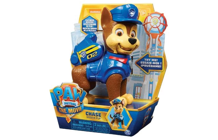 Dit interactieve PAW Patrol-figuur is 15 cm hoog. Met meer dan 60 geluiden en zinnen en authentieke details biedt een leuke nieuwe manier om met je favoriete heldhaftige pup te spelen. Chase reageert op je aanraking: druk op zijn badge om geluiden en zinnen uit de film te horen. Zijn ogen knipperen en zijn hoofd en mond bewegen terwijl hij met je communiceert. Help Ryder te redden en druk op het puppack van Chase voor nog meer geluiden en zinnen terwijl je verder gaat met je missie. Dit PAW Patrol-speelgoed is de perfecte manier om de actie en spanning van PAW Patrol De Film thuis opnieuw te beleven. Inhoud: 1 Chase Mission Pup en een gebruiksaanwijzing. Wordt inclusief 2 AAA-batterijen geleverd in try-me doos. Geschikt voor kinderen vanaf 3 jaar.