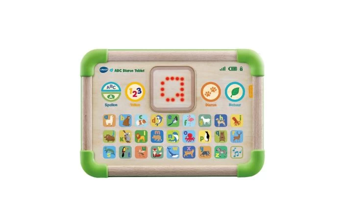 Kijk naar het led-scherm om letter- en cijferanimaties te zien en tik op het scherm of de toetsen om kennis te maken met letters, letterklanken, dieren, dierengeluiden, natuurgeluiden en nog veel meer! Speel verschillende zoekspelletjes, leer tellen, luister naar 4 gezongen liedjes en maak muziek met de dieren. Het plastic dat in dit product wordt gebruikt, bestaat voor 90 procent uit gerecycled plastic. Gemaakt van 100 procent FSC-hout. De teksten zijn Nederlands gesproken. Met regelbaar volume en voorzien van automatische uitschakeling. Stevig en duurzaam design. Wordt inclusief 2 AA-batterijen geleverd in try-me doos. Geschikt voor kinderen vanaf 1 jaar.