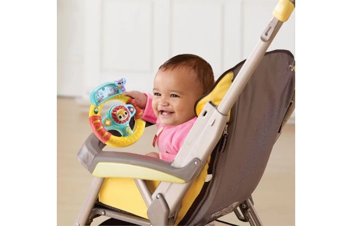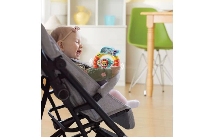 Het draaien van het stuurtje, het drukken op de richtingaanwijzers en het drukken op de auto-toets prikkelt de fantasie en zorgt voor volop speel- en rijplezier. Laten we een ritje maken! Wordt inclusief 2 AAA-batterijen geleverd in try-me verpakking. Geschikt voor kinderen vanaf 3 maanden.
