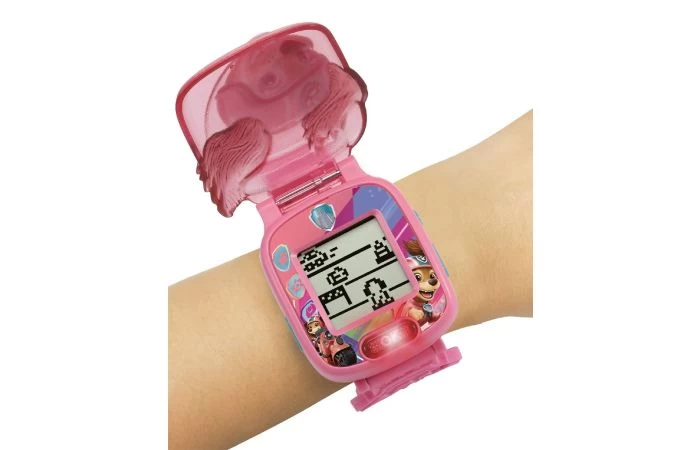 Dit puptastische roze horloge laat je niet alleen de tijd zien, maar bevat ook een wekker, stopwatch, timer en 4 ingebouwde spellen! Maak tijdens de spellen onder meer kennis met cijfers en problemen oplossen. Druk op het klepje, wanneer het dicht is, om Liberty te horen en zie het lichtje knipperen. Wordt inclusief 1 knoopcelbatterij geleverd in try-me verpakking. Geschikt voor kinderen vanaf 3 jaar.