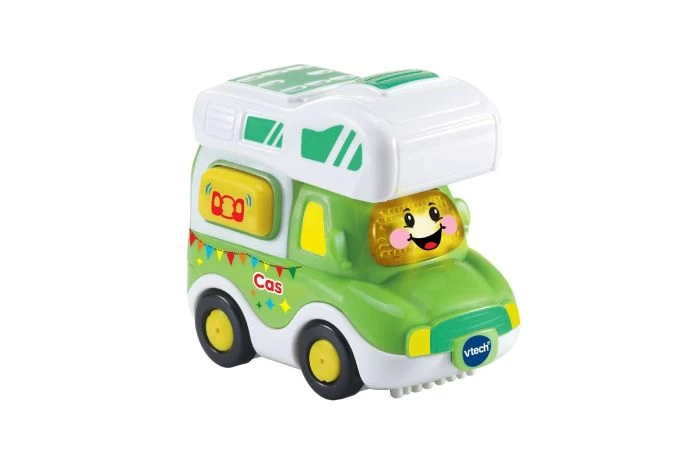 Verzamel alle voertuigen uit de Toet Toet Auto’s collectie! Met knipperende gezichttoets en realistische geluiden. Druk op de actie-toets om de deuren te openen en grappige geluiden te horen. De magische sensor herkenning activeert grappige zinnetjes, vrolijke liedjes en melodietjes. Dit artikel is te gebruiken met de Toet Toet Auto’s en Zoef Zoef Dieren speelsets. Met 6 melodietjes en 3 gezongen liedjes, Nederlands gesproken. Stevig en duurzaam design. Voorzien van aan-uit-schakelaar en automatische uitschakeling. Kom en ga op een avontuurlijke reis met Cas Camper! Wordt inclusief 2 AAA-batteirjen geleverd in try-me doos. Geschikt voor kinderen vanaf 1 jaar.